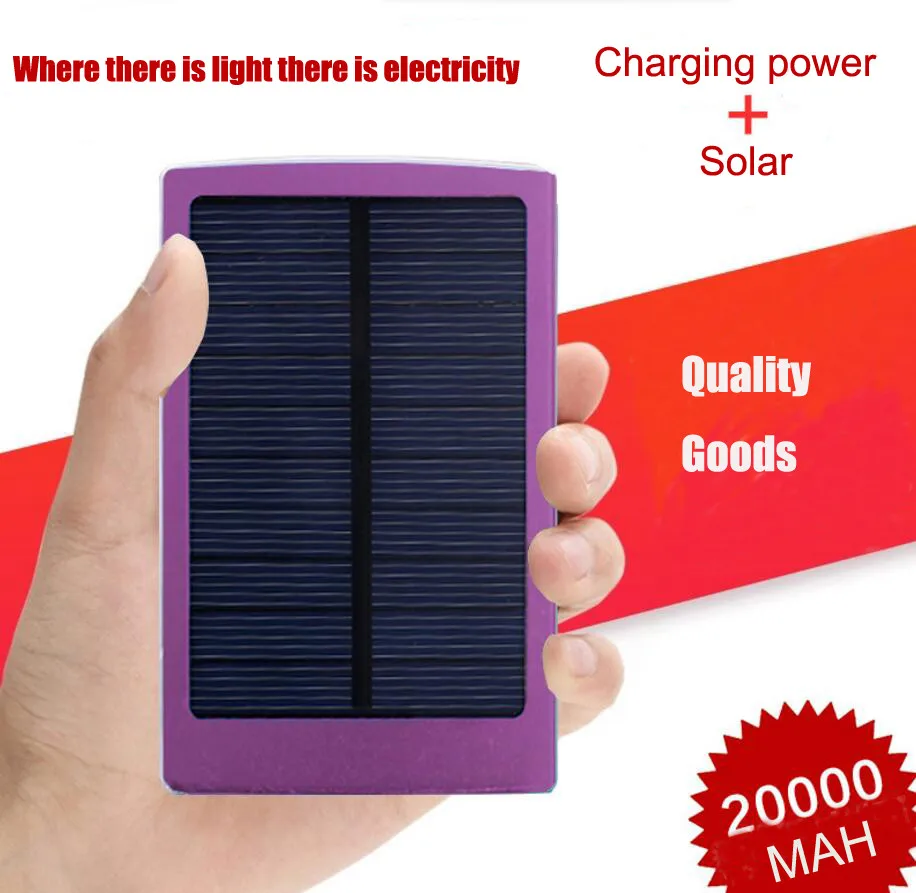 New Products LED Solar Power With Super Capacity, Power Bank 20000mah With Dual USB Output