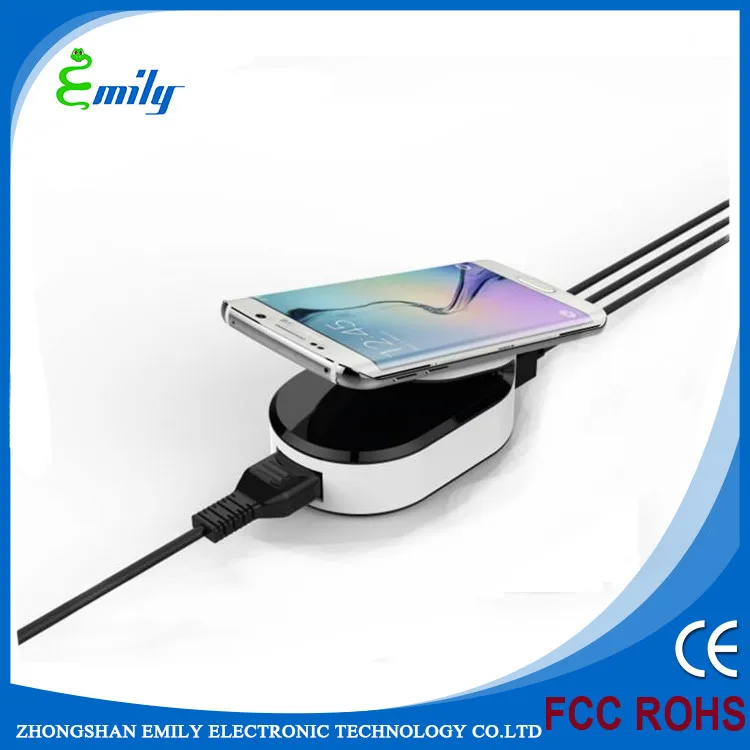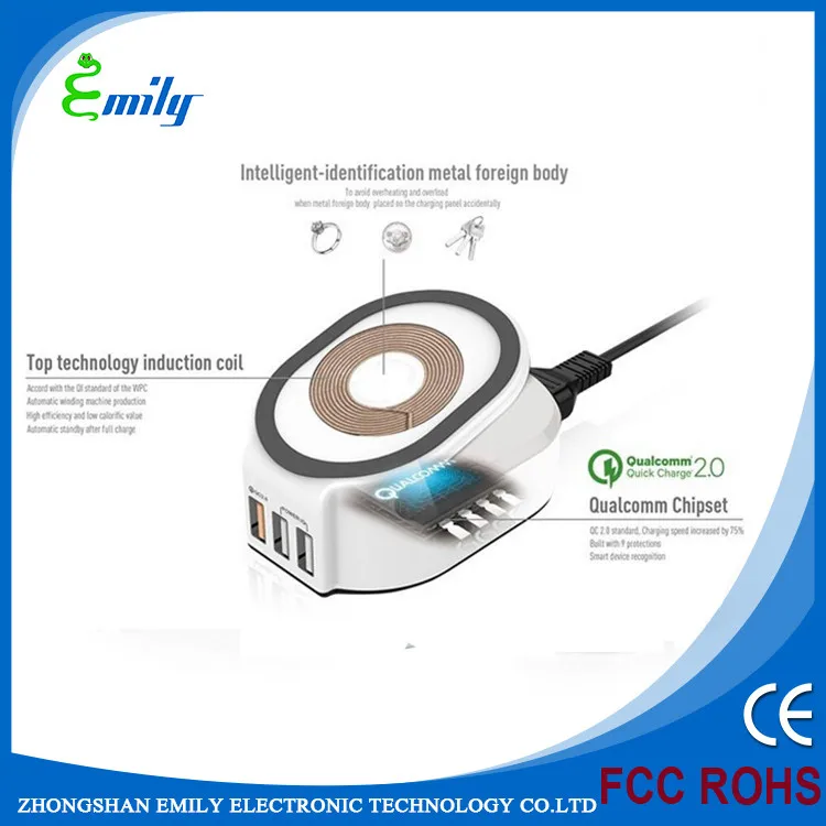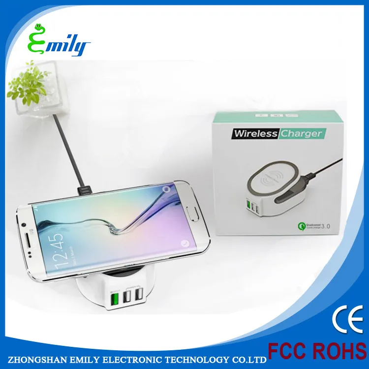 QC2.0 Portable 3 Ports Cell Phone Charger+QI Wireless Phone Charger Station for Iphone Samsung Htc lg Nokia Google Moto