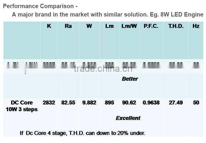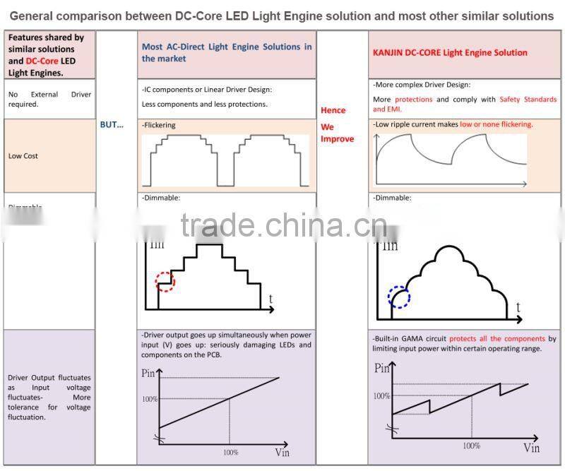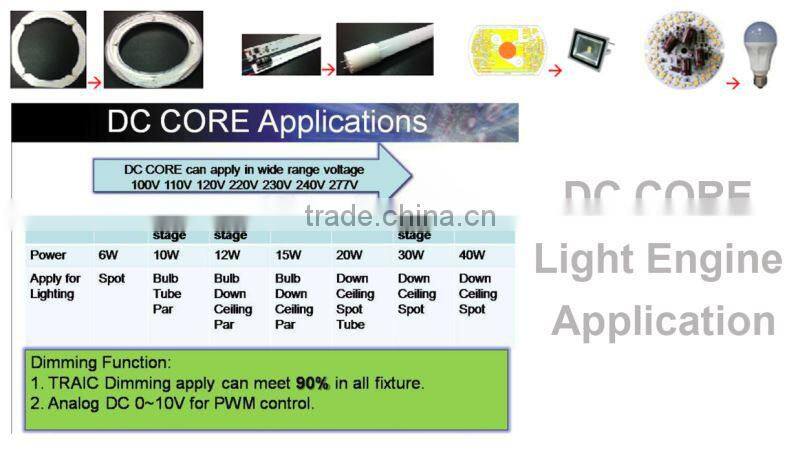 - The DC CORE Light Engines are applied directly for AC power source. They do not need the switching type driver to make circuit is simple and reduce the natural resources for mass production.