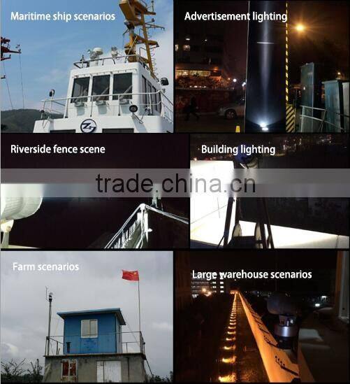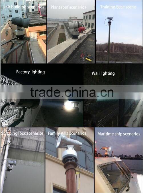 Our searchlight use for Outdoor,Garden,Armed police,Search and rescue,Patrol defense,Port ,Billboard,Site,Reservoir,Pond,Maritime,Advertising,Guardrail,Riverside,Building,Farm,large warehouse,Training base,Workshop roof,Factory lighting,Shipping lock,Family villa,Scene mode,Unit building,Security monitoring,especially for Outdoor,Garden,Armed police,Building and Security monitoring.