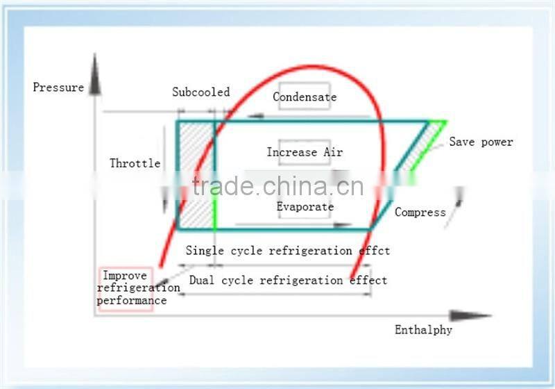 Two-stage compression intermediate air-supplying refrigeration cycle increase efficiency over 5% than Single-stage compressor refrigeration cycle.