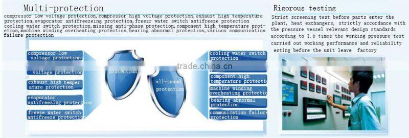 The entire unit designed specifically for R134a refrigerant, R134a as refrigerant CFC-free and efficient (ODP = 0) does not have any damaging effects on the ozone layer, is new and efficient refrigerant. The system uses R134a is positive pressure running, there is no non-condensable gas into the system. System cleanliness is high, no additional purchase necessary vacuum suction recovery unit. Compared with the negative pressure design unit, the unit is compact, small size, can greatly reduce the unit area