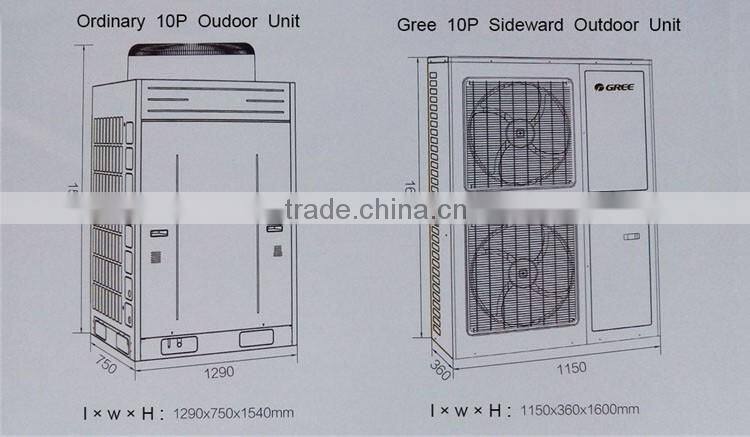 Small dimension of 10P outdoor unit,reduce unit installation space,larger working place