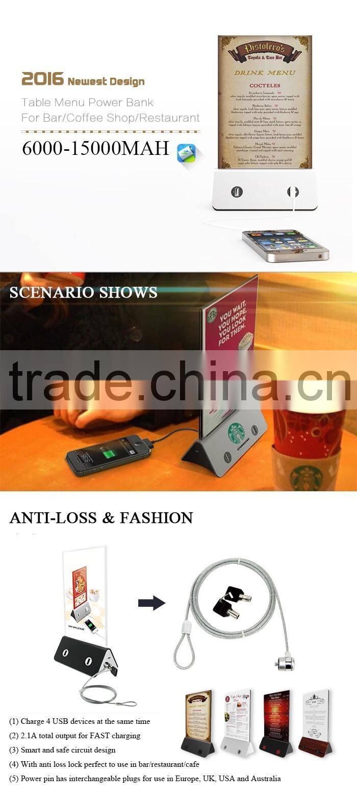 2016 Promotional Products Menu Holder Power Bank 10000mah for Coffee Shop