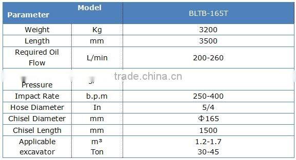 Spicification of BLTB165T hydraulic breaker best after sale service hydraulic hammer