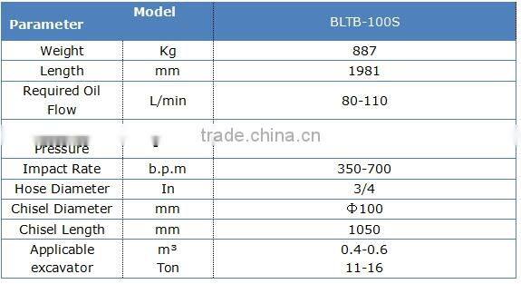 Applicable Excavator of BLTB-100S Side Type Hydraulic Breaker with 100mm Chisel