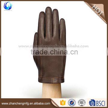 Personalized winter mens brown fur lined sheepskin leather gloves |
