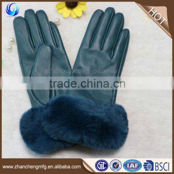 Funky women genuine sheep leather hand gloves with rabbit fur cuff |