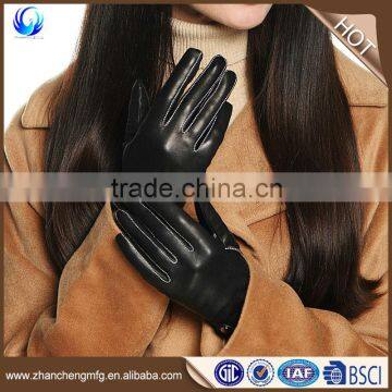 2016 new style ladies cashmere lined black genuine sheepskin leather touch gloves |