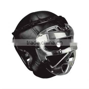 Traditional style boxing head guard for competition and training. Genuine cowhide leather outside for durability and soft PU inside for comfort and ease. EVA padding around the ear. Laces on top with Velcro closure on back for secure tight fitting. Also available in buffalo and synthetic leather also available Clear Transparent plastic shield