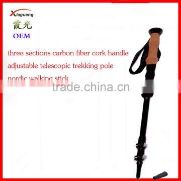 Three Sections Carbon Fiber Cork Handle Adjustable Telescopic Trekking Pole Nordic Walking Stick