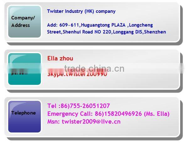Payment: 30% T/T advance,blance before shipment or 70% L/C at sight.Western Union, PayPaL
