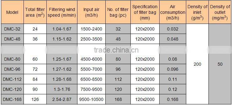 Features of industrial air cleaning equipment, DMC series dust collector