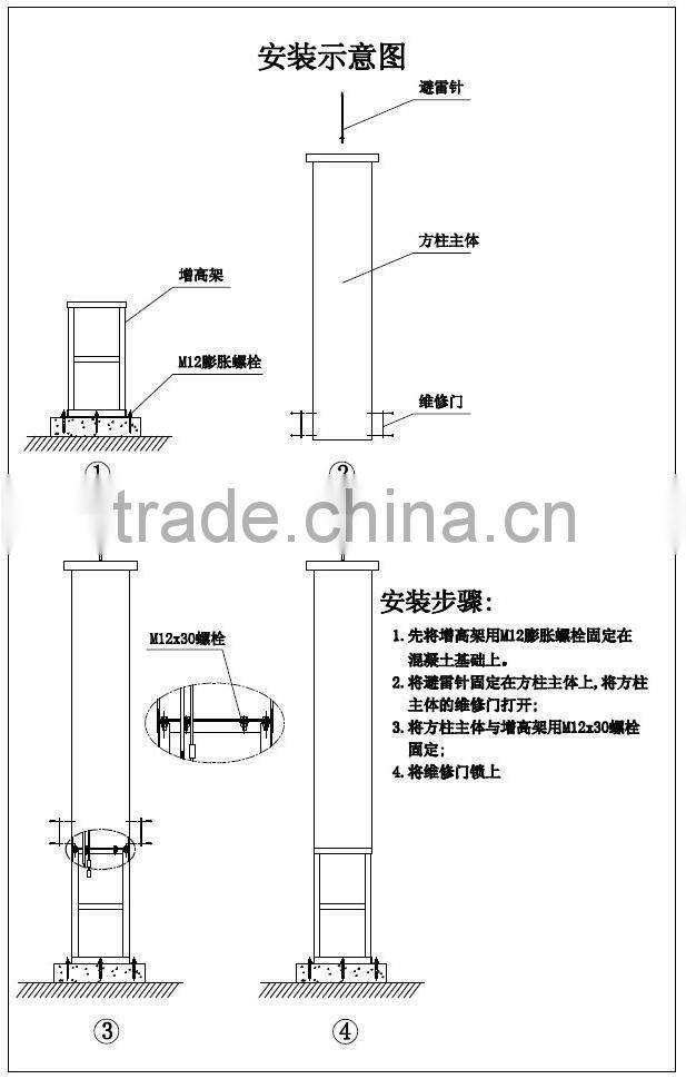 Multi-range 824-2690MHz Integrated Square-Column Shape Camouflage Antenna for Wireless CDMA/GSM/DCS/PCS/PHS/3G/WLAN/4GLTE