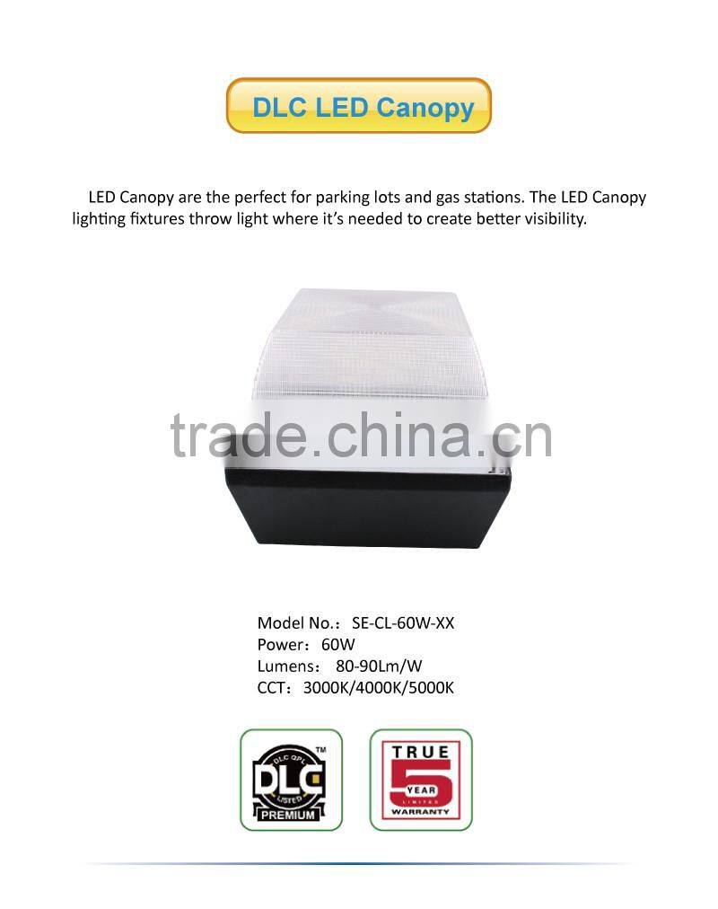 Professional Lighting 80Lm/W Meanwell Driver 60W LED Canopy Light Fixture