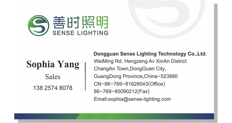 Dongguan Sense lighting Technology Co., Ltd. specializes in LED lighting products , R&D and sales and service. With expertise in LED high bay light, flood light, spotlight, street light, wall pack, led canopy,led shoe box light and led corn light, we have a wide range of led products. We own 8 years expertise in led lighting and have rich experienced in hardware, mold and tooling related knowledge.