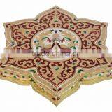 Square/ Rectangular Inner Cutting Leaf Designed Decorative Handmade Wooden Meenakari Dry-fruit Tray