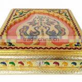 Square/ Rectangular Inner Cutting Double Mango Designed Wooden Meenakari Chocolate Box