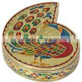 Round Peacock Designed Decorative Hand-made Wooden Meenakari Chocolate Box / Dry Fruit Box