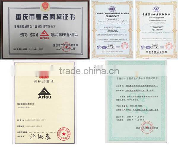 Chongqing Arlau Civic Equipment Manufacturing Co., Ltd is a professional company engaged in manufacturing, design and sale. Our main products are leisure bench, park bench, waste bin, outdoor table and chair, tree grate, planter, umbrella, outdoor fitness equipment, and play ground facilities. We have many years production and sales experionces since 1999 and products sell well in home and abroad. Arlau has won good reputation from customers.