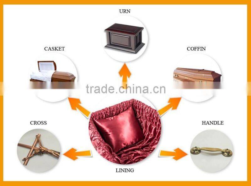 Our main products are coffin lining and casket interior. At the same time we can also supply you the casket, coffin, urn and other accessories.