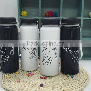 420ml Single Wall Stainless Steel Sports/outdoor Water Bottle With Pattern and Plastic Lid