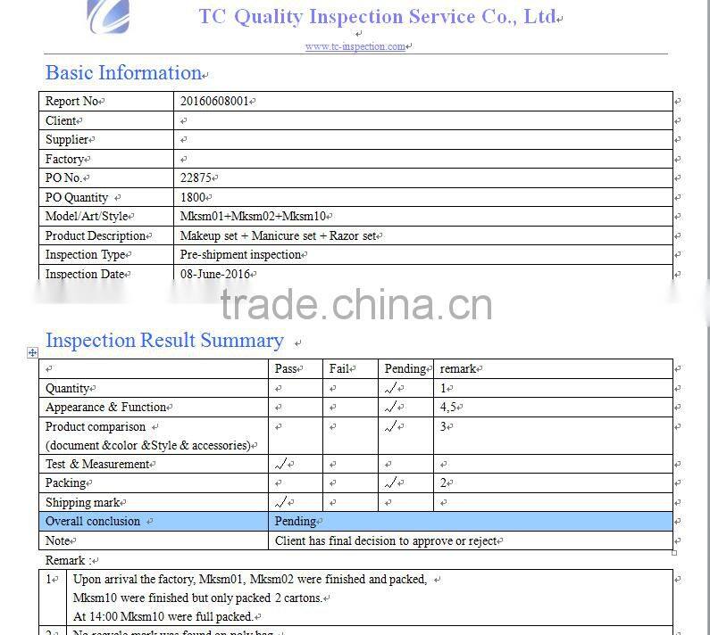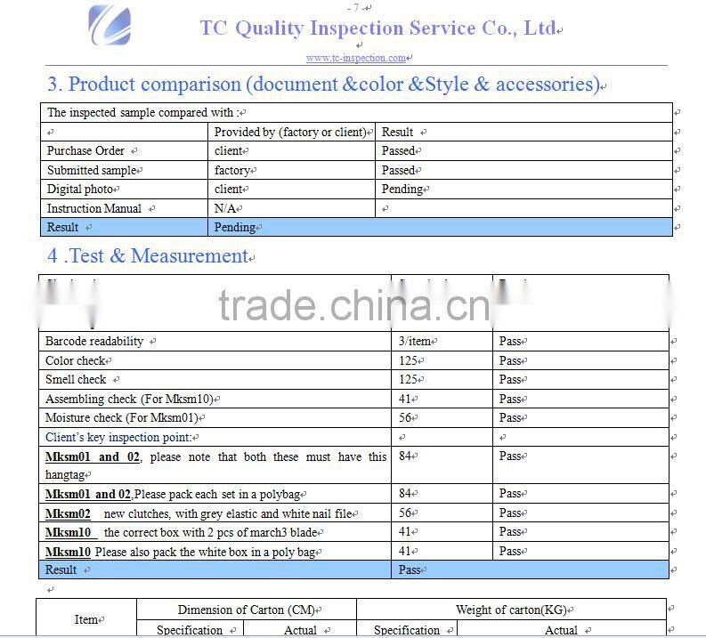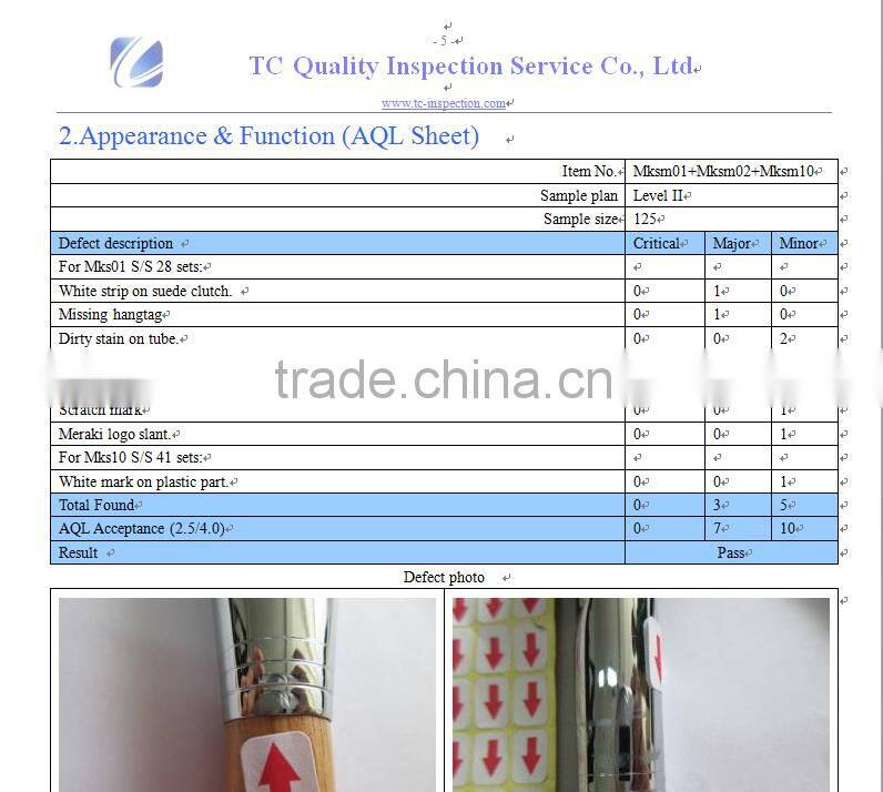TC-Inspection is dedicated to provide professional QC service for a wide range of consumer products and help customers control defect problem, improve quality, protect buyer’s interest and minimize import risk and loss, so as to have a successful business! We started our operation from 2005, offering professional supervision, inspection, auditing, and some testing service.
