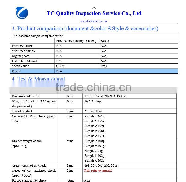 1 out of 5tin was found only 2pieces fish cut/food inspection