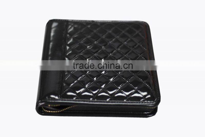 Personalized lattice leather portfolio with zipper pocket