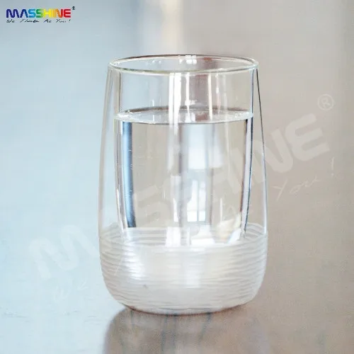 Unique Manufacturer Mouthblown Borosilicate Double Wall Thread Shape Glass Cup