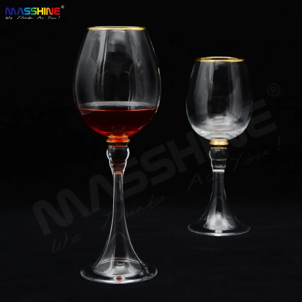 Manufacturer Wholesale Elegant Unusual Handmade Clear Red Wine Glass With Gold Sliver Rim With Speaker Bottom