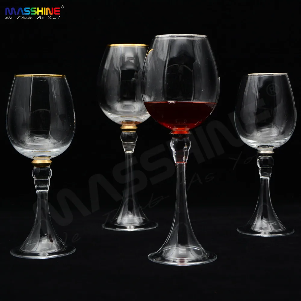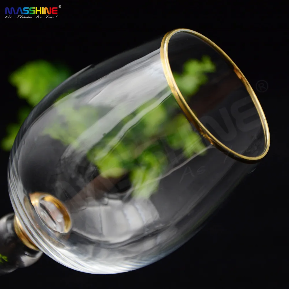 Manufacturer Wholesale Cheap Elegant Unusual Handmade Red Wine Glass With Gold Sliver Rim With Horn Shape Bottom
