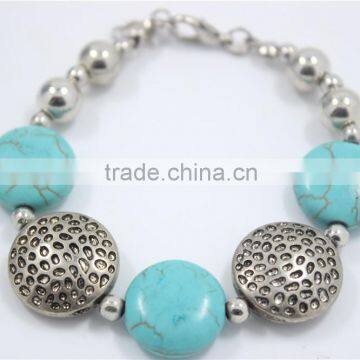 Handmade Gypsy Tibet Silver Turquoise Stone & Uneven Flat CCB Beaded Bracelet For Women Jewelry For 2016 New Intrend style Wholesale