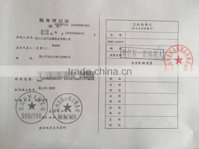 Kunshan tian jin gang metal products co., LTD is located in kunshan, is a city full of reiki jiangnan water, the international metropolis of Shanghai in the east, the west according to the historical and cultural city of suzhou.