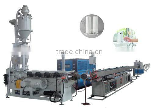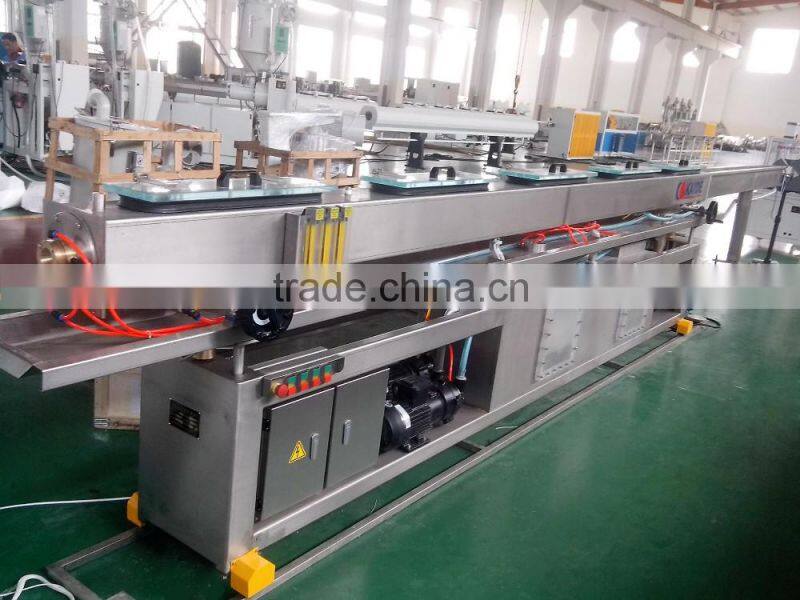 LDPE purify water tube production line, is used to produce purifying water pipe, which adopts the most advanced technology,such as,Siemens PLC synchronous control system, Hydraulic screen changer, German Coax Vacuum valve to control the vacuum degree.