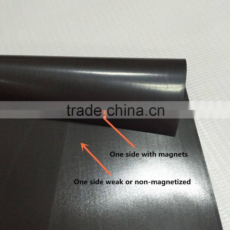 The weak side is for laminated PVC, PP or paper, the magnetized side is for work with magnetic receptive material, such as iron board.