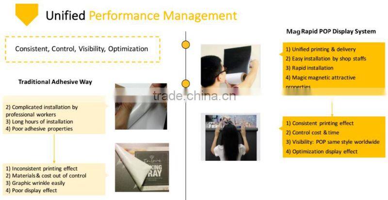 Magnetic system is widely used in POP and sign display industrials, which is composed by high quality Wall-Mag series, Ez-Steel series (magnet receptive), Ino-Mag series, and Energy-Mag series.
