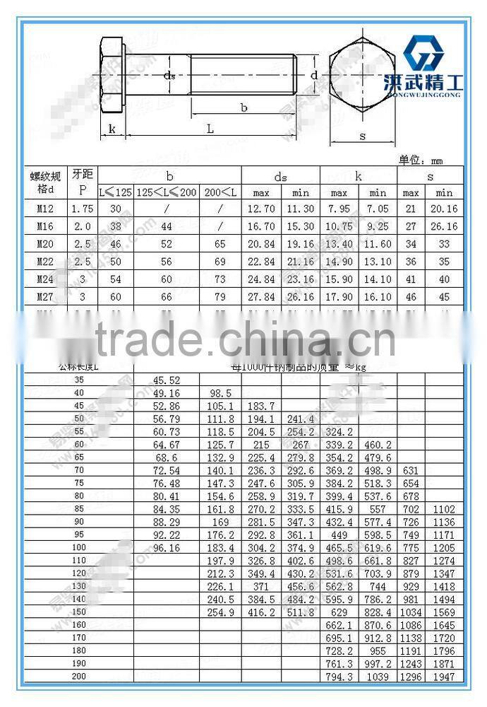 Hexagon Bolts for Structural Bolting With Large Width Across Flats
