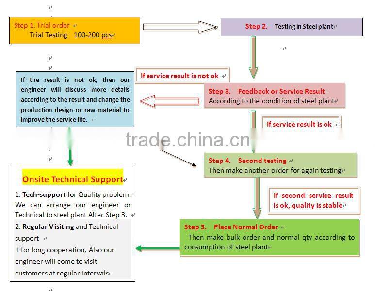 1. Serivice life depends on steel-making condition, refractory slide gate and different operation mode. The above service life we supply is based on the condition of more than 100 Tons ladle.