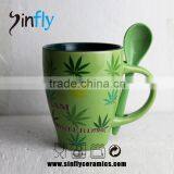 Color Glazed Stoneware Mug With Spoon and Decal Printing