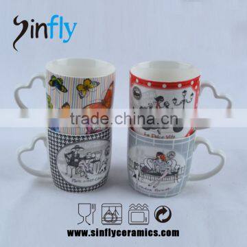 Hot sale heart shaped handle ceramic tea cup promotion cup