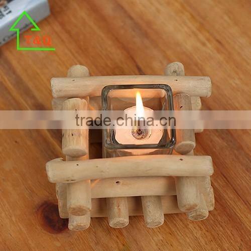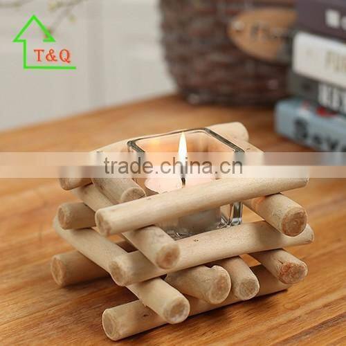 2016 Unique Cheap Artificial Handmade Wooden Glass Candle Holder