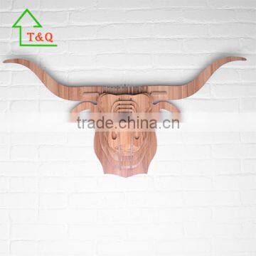 DIY Wooden Buffalo Animal Head 3D Wooden Wall Panel Home Decoration
