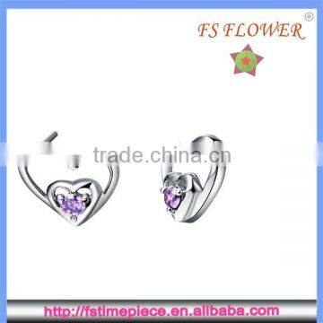 FS FLOWER - Heart With Heart Silver Diamond Inlay Earrings