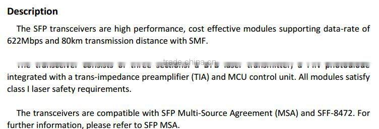RoHS Compliant Sfp Transceiver Manufacturers 155M SFP 1310nm 40km