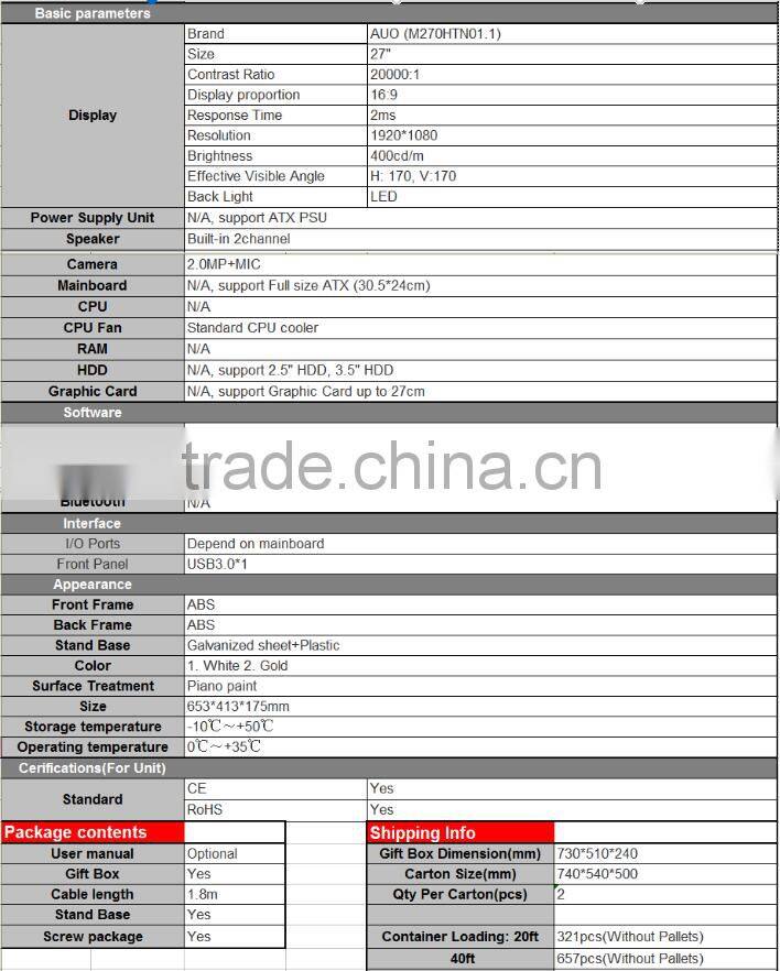 Shenzhen hailan electronic Co.,Ltd was founded in 2012,located in Baoan Dist,Shenzhen city,china,Which is the main industrial base of Shenzhen. We are a professional factory of ALL IN ONE PC BAREBONE SYSTEM with strong technical force which has passed ISO9001 quality management system,with a wide range,good quality,reasonable prices and stylish designs,our products are extensively used for education ,hotel,office and home,some high-end items also could be used in gaming computer.To ensure that all materials comply with requirements of practical performance,we can provide the related material testing reports such as CE,CCC and so on.