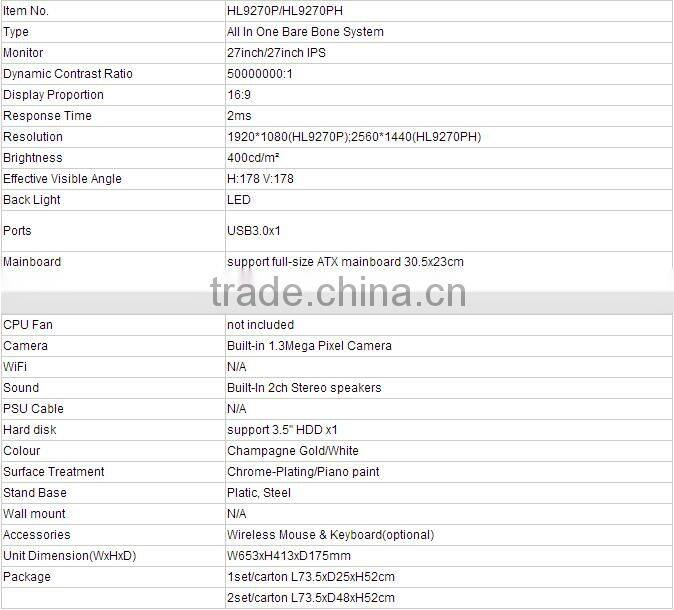27" Bare Bone pc 27" IPS Panel 2560x1440 Resolution All in One