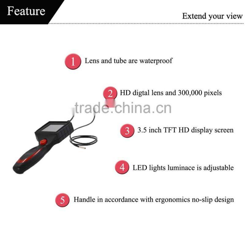 The endoscope works with a φ5.5mm HD camera and 3.5 inch TFT HD display screen.it owns superminiature