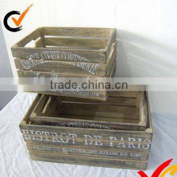 Luckywind Vintage S/3 wooden storage basket with printing