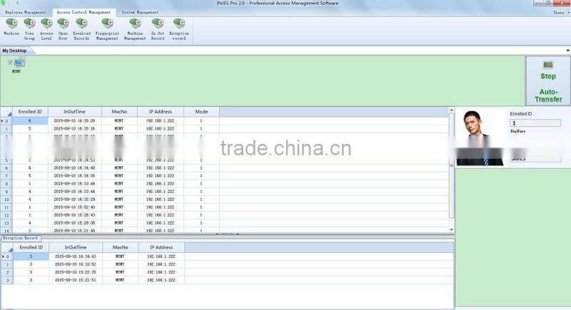 Employee IN/OUT logs can be automatically transfered to INJES Pro 2.0 once you start auto-transfer function, and you can see employees name, time, photo in real time in INJES Pro 2.0. |